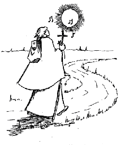 On the following evening the Gospel scene of the refusal of some disciples to accept the teaching of Jesus that He is the Bread of Life was acted out. It was a poignant feeling to see some leave His side. But Peter speaks up: "Lord to whom shall we go? You have the Words of eternal life." We then invited everyone to come up before the exposed Blessed Sacrament and commit themselves to the truth of the Real Presence.