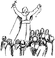 On the following evening the Gospel scene of the refusal of some disciples to accept the teaching of Jesus that He is the Bread of Life was acted out. It was a poignant feeling to see some leave His side. But Peter speaks up: "Lord to whom shall we go? You have the Words of eternal life." We then invited everyone to come up before the exposed Blessed Sacrament and commit themselves to the truth of the Real Presence.