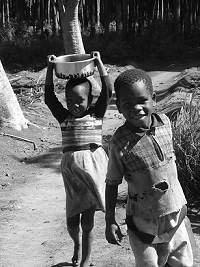 In July, after flying on 29 June to Nairobi, and from there on 1 July to Malawi, I gave a retreat to a group of about 10 at the Montfort Pastoral Centre in Nantipwili, not far from Blantyre, the commercial capital of Malawi. I was surprised to find that the temperature there was actually somewhat lower than what I had left behind in Scotland, and overcast most of the time, to boot! It has to be remembered of course that Blantyre (and Nantipwili) is in the Southern Highlands of Malawi (about 3,000 ft above sea-level). Despite the cloud cover, that part of Malawi has had no decent rains for a couple of years, and the people of Malawi are in danger of famine, along with so many others in sub-Saharan Africa. This fact, added to the universal prevalence of AIDS-HIV, and the general poverty of the country (Malawi is reckoned to be the 6th poorest country in the world), would, you would think, make the population miserable - but one of the most striking things about the Malawian people (and other African peoples) is their cheerfulness in the face of so much hardship. Not for nothing is Malawi called "the warm heart of Africa"! The smiling faces of the two children in my photograph bear witness to this.